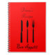his French influenced recipe notebook can be customized with your choice of font and size. A fork, spoon and knife is below your title with Bon Appetit at the bottom. This cover is printed on French Red. Be sure to view all the items in my French Home collection. Choose from paper plates, napkins, gift wrap items, tags and labels.