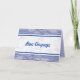 Bon Voyage card. Bon Voyage written in blue on a white blue piped textured band over layed on a soft sky backdrop. The inside is light blue and Bon Voyage is repeated. Has a kind of retro air travel feel. This card can also be customized.
