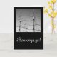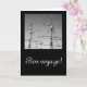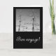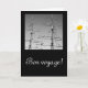 Black card with black and white photo of ship masts and the text bon voyage. Customizable.