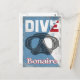 Bonaire Caribbean vintage scuba mask travel poster design. A blue and white diver down flag background with a retro scuba mask and word "Dive" at the top.