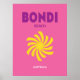 Bondi Beach is a popular destination in Australia. It's known for it's beach and surfing culture. This image features a sun motif in motion on a pink ground.