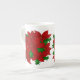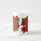 Delicate Poinsettia Bone China mug to serve tea or coffee or any hot beverage that would accompany a sweet delicacy desert after a hardy Christmas dinner. You do have a choice of adding a background color however the contrast of the glossy white finish serves this presentation just fine. A set of 2, 4, 6 or more would make a wonderful holiday gift.