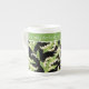 A pretty Bone China Coffee Mug to personalize, with an Art Nouveau style pattern of Lilies-of-the Valley on a Black background; from the Posh & Painterly 'For the Love of Lilies' collection.