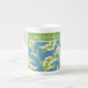 A pretty Bone China Coffee Mug to personalize, with an Art Nouveau style pattern of Lilies-of-the Valley on a Blue background; from the Posh & Painterly 'For the Love of Lilies' collection.