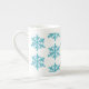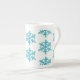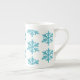 This mug is shown in the bone china style with a fun festive holiday snowflakes print.