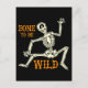 Funny dancing skeleton with a big grin. Text says BONE TO BE WILD. Perfect for all your Halloween parties and celebrations on T-shirts, greeting cards, buttons, stickers and more! PinkInkArt original!