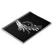 A close-up of a skeleton guitar player's hands, playing an electric guitar, with, "I've got a bone to pick with you" text. Black & white art on t-shirts, sweats, gift merch.