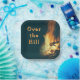 Over the hill paper plates with a burning fire design. Perfect for an outdoor birthday celebration around the fire. Customize the text with his name, age, or use "over the hill". Dark color with orange text next to a bonfire image. Choose round or square plates in two sizes.