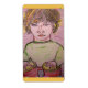 a young boy playing toy bongos from a colored pencil sketch.