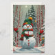 Bonhomme de neige dans la forêt, dans les tons rouge et vert, parfait pour les fêtes de fin d'année