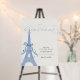 Say bienvenue with this chic and elegant Paris-themed baby shower welcome sign. Designed with soft dusty blue tones, a dainty Eiffel Tower illustration tied with a bow, and modern script typography, this invite is perfect for celebrating a baby girl in Parisian style. The back features classic blue and cream stripes, giving it a polished, boutique feel with a coquette edge.