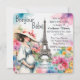 Bonjour Bebe Floral Eiffel Tower Paris Baby Shower Invitation