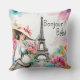 Bonjour Bebe Floral Eiffel Tower Paris Baby Shower Throw Pillow