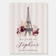 Set the tone for your Parisian-inspired celebration with this Bonjour Bébé baby shower welcome sign from Redwood & Vine Design Co. Featuring blush pink stripes, a hand-painted Eiffel Tower, and burgundy floral accents, this printed foam board sign brings elegance and warmth to your entrance or gift table. A beautiful choice for fall or winter baby showers with a romantic, French theme.