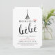 Bonjour Bebe Pink Beret Eiffel Tower Baby Shower Invitation