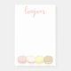 Ooh la la! These pretty pastel sticky notes will add some Parisian flair to even the most mundane daily tasks...like your shopping list! Design features "Bonjour" in peach handwritten-style typeface with four tasty macaron illustrations in pink, yellow, ivory and beige.
