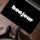 Bonjour, proclaims this fun doormat, in bold, modern typography. A french hello that is simple and stylish, this black and white mat has graphic, minimalist appeal. Welcome guests to your doorstep with this cute, contemporary door mat! From Paris to Montreal to New Orleans and all points in between, this doormat is très chic!
