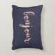 Bonjour! Lend some style en francais to your couch, bed or favorite chair with this pretty accent pillow. Design features a deep midnight navy blue background with "Bonjour" in peachy pink handwritten-style script. Use the optional personalization field to add a name, monogram or message to the back of the pillow.
