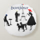 Bonjour Paris city life with lady walking dogs, artist painting and a man drinking wine at the Champs de Mars with a view of the Eiffel Tower.