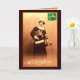 Vintage postcard reprint on a greeting card . It features a Christmas shopper .She is standing in the snow and her hand is full of gift boxes . Bonne et Heureuse Annee - this is written on the photo which means in French Good and Happy New Year .Courtesy of The Graphics Fairy - edited and applied on this item by Alma Wad . You can customize this card with your text /photos /logo .