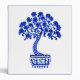 Binder in a whimsical bonsai tree in a Chinese porcelain planter, in traditional shades of deep to light cobalt blue, on a white background