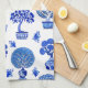 Bonsai Trees Pattern in Cobalt Blue and White Kitchen Towel