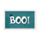 Boo! text design for Halloween with cat, spider, owl and spider net decoration on grunge blue background.