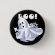 Cute Ghost pin features our original digital art of a spooky ghost with the word boo! in white on a black background. Have some spooky fun this Halloween with our ghostly gifts. This spooky specter is perfect for anyone who loves to be scared, loves Halloween, loves trick or treating and ghosts in general. Have a haunted Halloween!