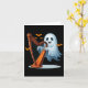 Boo Ghost Playing Harp Halloween Musical Instrumen Card