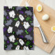 Boo Ghosts Halloween kitchen towel. With 4 different ghosts, bats and other Halloween motifs in classic Halloween colors of purple, orange and green. You can make the ghost pattern smaller or larger on the kitchen towel.