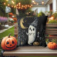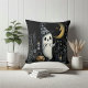 A throw pillow that matches the grandeur and spookiness of Halloween. The artwork features Halloween ghost, the cute and creepy ghoul BOO. The text can be easily customized with your own words.