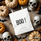 Celebrate Halloween in style with this BOO! minimalist Halloween favor bag. Featuring bold black distressed typography on a crisp white background, this simple yet eye-catching design is perfect for holding candy, cookies, or small gifts. Ideal for trick-or-treating, classroom parties, spooky events, and stylish Halloween gatherings. Personalize with your family name or event details for a festive touch your guests will remember.