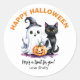 Boo! Happy Halloween friendly ghost & Cat Classic Round Sticker
