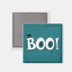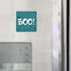 Boo! text design for Halloween with cat, spider, owl and spider net decoration on grunge blue background.