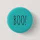 Boo black & teal minimalist simple spooky handwritten typography funny cute food allergy awareness Halloween pin button.