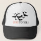 Share in the spooky holiday this year with this fun Halloween Trucker Hat. Bats are flying high. Customize your own message.
