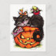 Halloween greeting card. Black cats and spiders