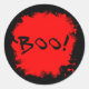 Halloween sticker has a big red splatter with the word BOO! in the center.