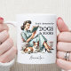 Step back in time with this charming vintage-inspired mug, featuring a delightful illustration of a woman sitting and reading a book beside her loyal dog. The nostalgic scene is accompanied by the phrase, "Easily distracted by dogs and books," capturing the essence of those cherished moments shared with a good read and a furry friend. This 11 oz coffee mug is perfect for any dog lover or book enthusiast, combining style and sentimentality in one beautiful piece. To make it even more special, you can personalize this mug with a name, making it a unique and thoughtful gift for yourself or a loved one. Enjoy your favorite beverage in a mug that celebrates the simple joys of life.