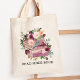 Elevate your reading style with our Book and Rose Flower Floral Reading Quote Tote. Decorated with watercolor illustration of roses, this bag speaks to book lovers, readers, and librarians. Personalize it with a reading quote.