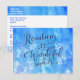 Fun bookmark or book marker for your book club members. Fill in address side with invitation or meeting reminder then use the card as a book mark. Blue and white color theme. Modern typography "Reading it's a wonderful way of life". Perfect for book lovers, book worms and bibliophiles.