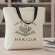 For the book lover and book club member. This personalized book club tote bag has a preppy, minimalist design featuring a book and flowers. This tote bag can be personalized with the inclusion of a book club name and the text of 'BOOKCLUB' can be kept as-is or edited. Because the text of 'BOOK CLUB' can be edited, this tote bag is suitable for anyone who loves and works with books from librarians to teachers. Add a school name or a library name. For any customization requests, please contact us before completing your purchase.