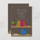 A charming bookcase, with favorite books in colorful covers, and a potted plant to decorate the shelves makes a great invitation for any book-club-related gathering. The card is easy to customize with your wording, font, font color and choice of six paper types.