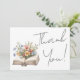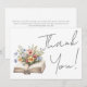 The front features a watercolor open book on the left side, with wildflowers and greenery spilling out in warm shades of red, blue, yellow, and orange for a cheerful, slightly vintage feel. To the right, “Thank You!” is displayed large in a flowing handwritten script, creating a warm and heartfelt focal point while keeping the design clean and elegant.