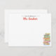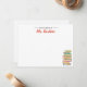 Cute colorful note cards for a school teacher, librarian or fellow bookworm. Simple name in black script lettering with a book stack propped against the border. Perfect for kindergarten or elementary teachers.