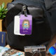 A cute purple luggage tag for kids (or grown up) who love to read . Add the child's name . Look for the matching passport cover .