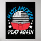 This funny book lover & reading teacher design reads "make america read again".The design features a american flag and a flag.