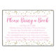 Cute book card baby shower - please bring a book insert cards with faux gold confetti and pink font. Add a card to each invitation you send out for guests to bring baby a book to start a library. Edit front and back