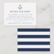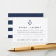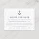 Slip these petite cards into your baby shower invitations when requesting books in lieu of cards. Nautical design features navy blue lettering with a small navy anchor illustration at the top. A sweet poem explains the book request: "just one request, we hope it's not hard // Please bring a book instead of a card // By signing your name, we'll remember and share // your sweet gift, even when you're not there." Personalize with the guest of honor's name and shower date along the bottom.