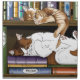 Two cats asleep on a book shelf of cat themed books. Great for the cat loving avid reader!